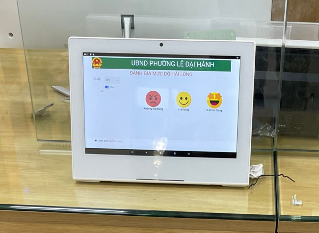 Hệ thống đánh giá hài lòng với các màn hình cảm ứng chuyên dụng được đặt trước các bàn giao dịch. Thiết bị cung cấp minh bạch toàn bộ các thông tin như; Tên và hình ảnh cán bộ, số quầy, lĩnh vực phục vụ.... Sau phiên giao dịch, người dân có thể bày tỏ sự hài lòng của mình đối với cán bộ phục vụ. Khi có quầy bị đánh giá xấu, hệ thống sẽ tự phỏng vấn người dân và báo cáo khẩn cấp lãnh đạo để góp phần nâng cao hiệu quả và năng lực phục vụ hành chính công!